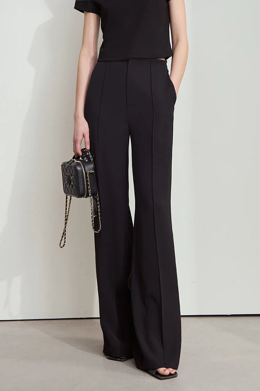 Calça Feminina Brooklin Elegance – Cintura Alta, Corte Largo e Estilo Minimalista ( Preta )