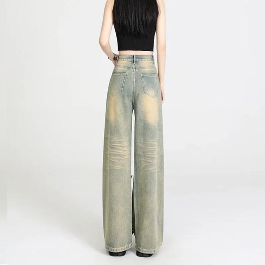 Calça Jeans Feminina Wide Leg Ripped Dirty – Cintura Alta