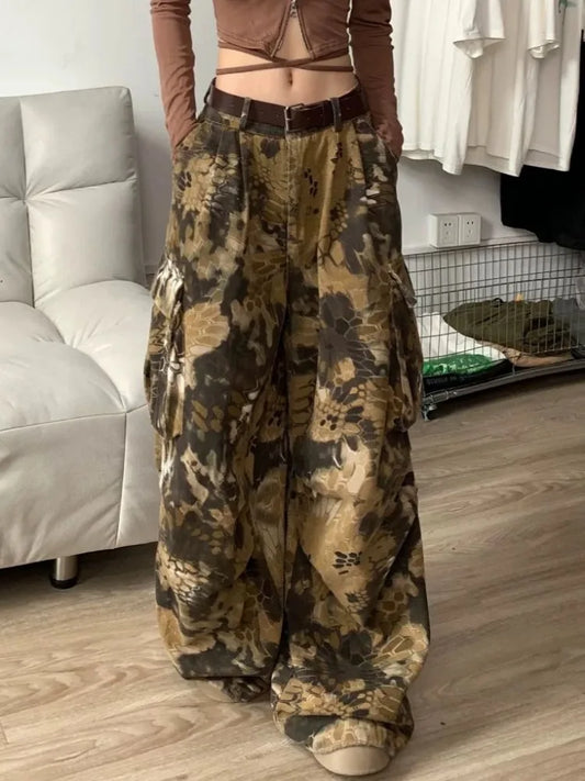 Calça Cargo Feminina Vintage – Cintura Alta, Estilo Streetwear com Bolsos Funcionais