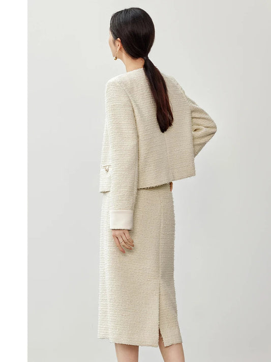 Conjunto Tweed Feminino Étoile – Casaco Curto & Saia Midi com Fenda