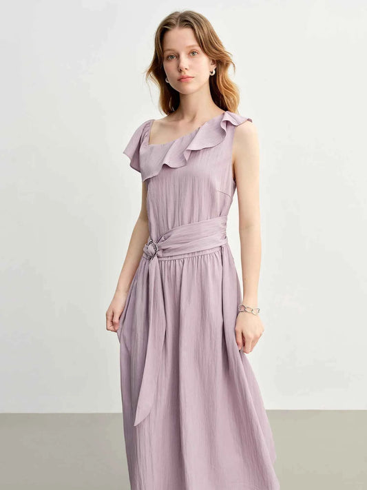 Vestido Midi Feminino Nyssa – Elegância Minimalista com Toque Natural