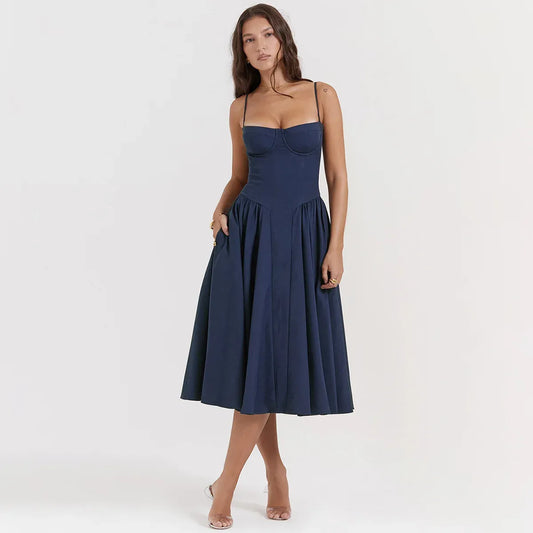 Vestido Midi Elegante Bella Radiant – Linha A, Alças Finas e Caimento Impecável