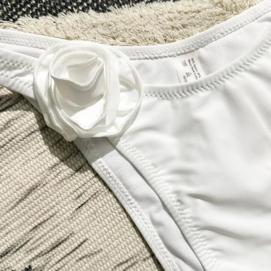 O top meia-taça oferece sustentação perfeita, enquanto a calcinha de cintura baixa garante conforto e charme. O branco atemporal ilumina a pele e combina com qualquer composição de saída de praia, criando um visual refinado e versátil.