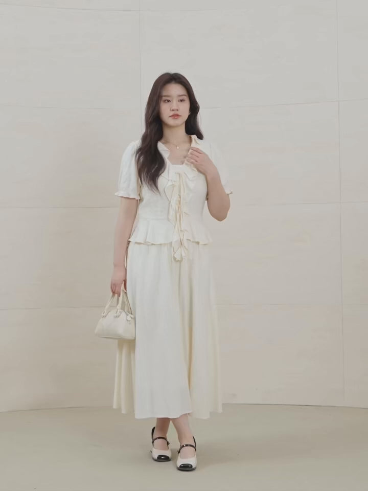 - Design refinado: Babados estratégicos que realçam a silhueta e conferem leveza ao visual.