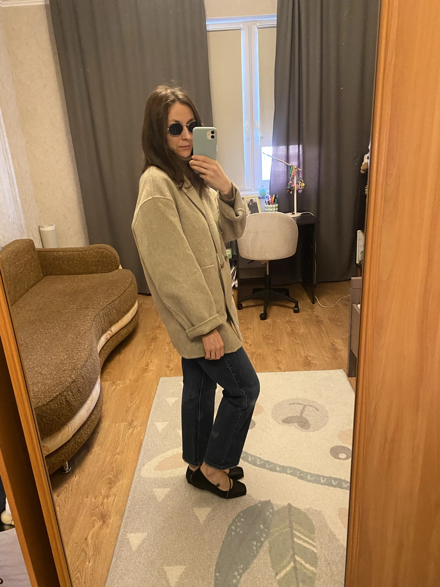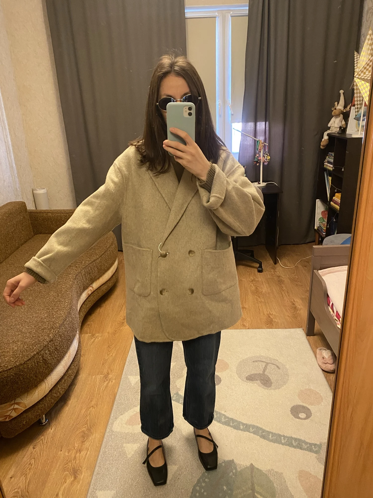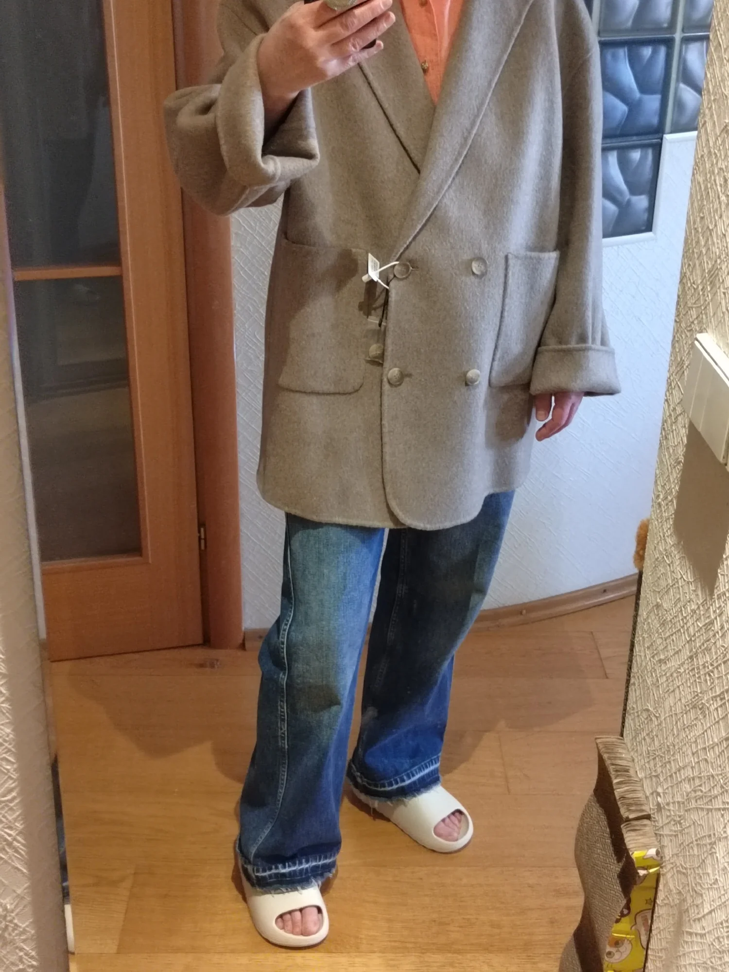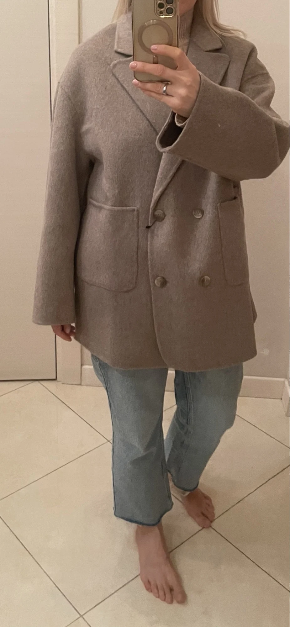 Excelente casaco, eu peguei G, acho que poderia ter escolhido o tamanho M. Para altura 168, as mangas são no comprimento correto. O tecido é bonito.