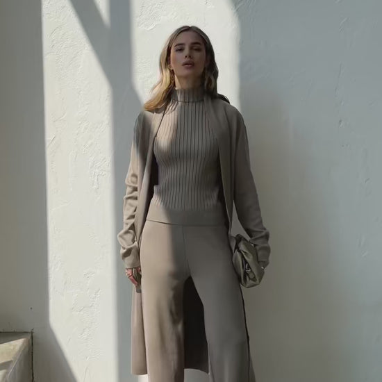 Conjunto Feminino Trio Aconchego — Cardigan Feminino Longo - Calça - Blusa