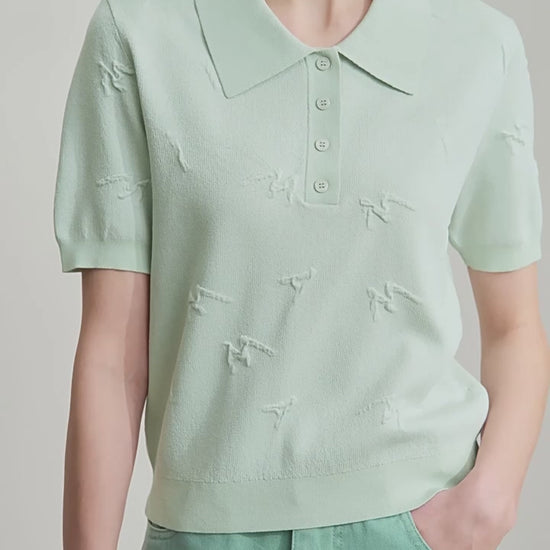 - Design contemporâneo: Estilo minimalista com gola polo e textura jacquard exclusiva.