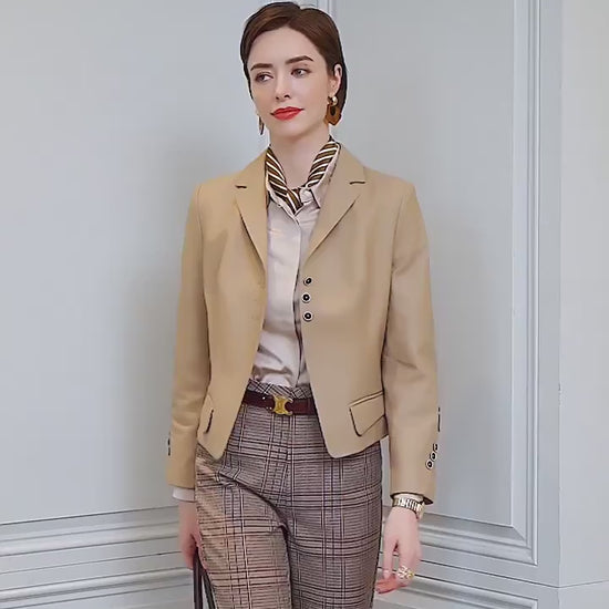 A Helena é aquela jaqueta que sustenta o visual inteiro, transmitindo confiança antes mesmo da primeira palavra.