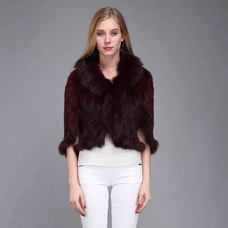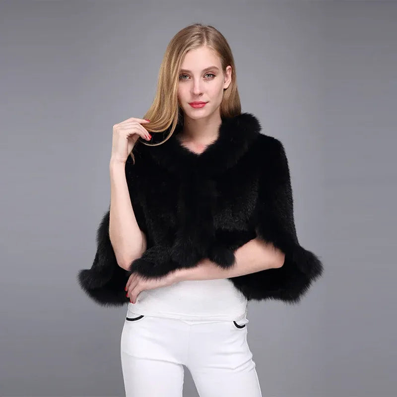 Poncho Casaco de Pele de Coelho e Raposa para Mulheres