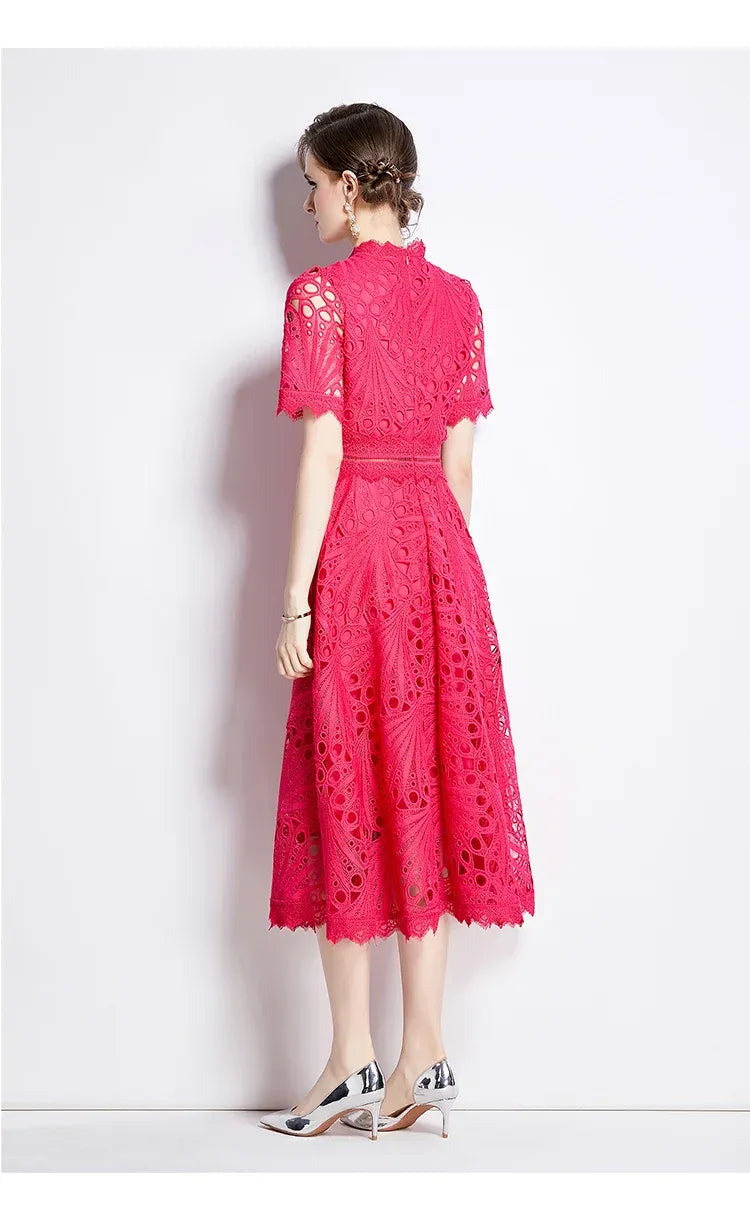 As mangas curtas levemente bufantes adicionam um toque clássico, enquanto o comprimento midi transmite segurança estética, tornando a peça ideal para eventos sociais, celebrações especiais, festas de formatura, jantares elegantes e ocasiões formais.