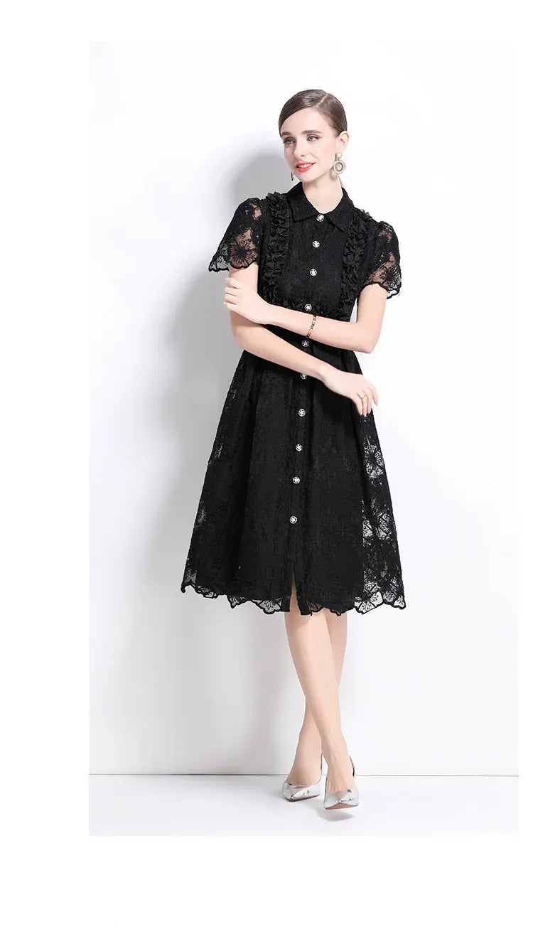 Vestido de Renda Feminino Cléo – Cintura Império e Botões Frontais