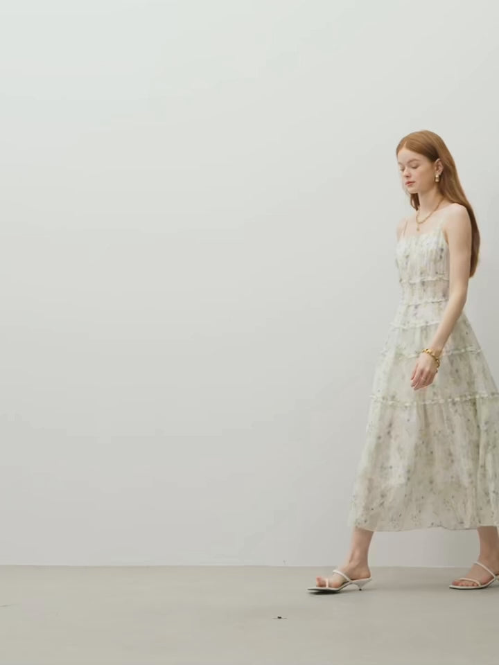 Vestido Midi Floral Feminino Jardin - Alças Finas & Cintura Alta